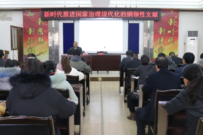 12月4日下午,公司黨委在地質(zhì)科研中心二樓會(huì)議室舉辦“新時(shí)代推進(jìn)國(guó)家治理現(xiàn)代化的綱領(lǐng)性文獻(xiàn)”專題黨課。特別邀請(qǐng)渭南市委黨校教授王四海授課。黨群工作部主任董新良主持本次黨課。