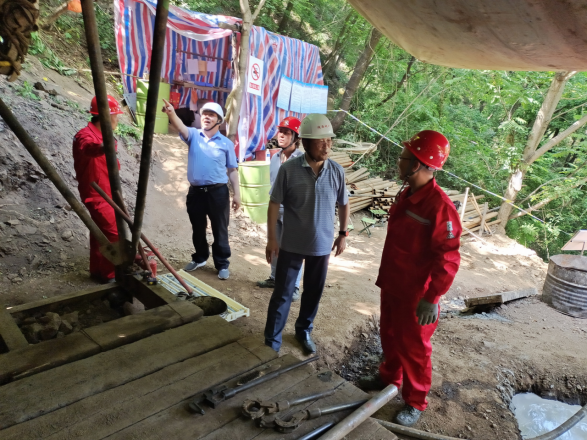 在鉆探施工現(xiàn)場,專家組成員在聽取了項目管理人員項目介紹和施工進展情況匯報后,對現(xiàn)場操作人員開鉆前安全培訓及安全技術交底情況、鉆機現(xiàn)場安全管理制度及操作規(guī)程落實執(zhí)行情況、鉆探設備設施安全防護現(xiàn)狀、井場物資存放布局情況、安全生產(chǎn)記錄臺賬、班組安全例會記錄、項目安全活動資料、安全警示標志牌、鉆探施工報表、職工防護用品配帶、現(xiàn)場滅火器配備、避雷裝置安裝、安全圍擋防護、機場用電、防火、防汛措施等多方面對項目現(xiàn)場進行了實地仔細復核檢查。