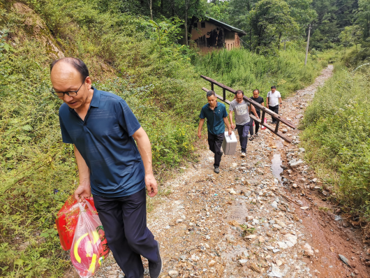 7月24日生態(tài)環(huán)境與地質災害處聯(lián)合商州區(qū)自然資源局攜帶救援物資、徒步5公里前往受災嚴重的腰市鎮(zhèn)江山村小溝組排查救助受災群眾,沿途道路沖毀,排查組涉水或借用村民梯子架路前行,排查出的地災點設置警戒線,轉移安置群眾及家電物資,并捐贈方便面、面包、餅干等生活物資,宣傳培訓識災避險應急知識,嚴防死守地質災害。7月26日,省應急廳總工程師董啟元聯(lián)同省水利廳、省自然資源廳專家深入商州區(qū)檢查指導地質災害防范工作,我公司現(xiàn)場匯報各隱患點風險排查情況。