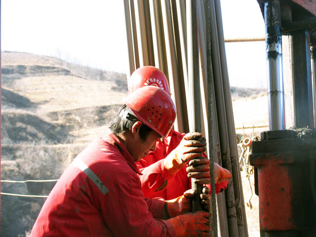 在施工現(xiàn)場(chǎng),記者恰好遇到鉆機(jī)提鉆。塔工侯師站在十多米高的塔頂上,鮮艷的工作服在空中顯得格外耀眼。幾個(gè)工人一絲不茍地忘我工作。據(jù)副經(jīng)理郭衛(wèi)兵同志介紹,這個(gè)孔要完成至少還得十多天時(shí)間,那時(shí)已經(jīng)是臘月十五、六了。
