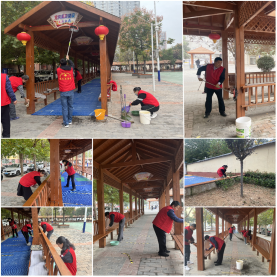 上午8時,機關(guān)一支部組織支部黨員16人,對單位院內(nèi)籃球場、涼亭、黨風廉政建設(shè)文化長廊、宣傳欄、道路護欄以及活動設(shè)施等進行了打掃、擦洗和清潔。由紀委書記趙永江帶頭參加義務勞動,支部黨員身穿紅馬甲佩戴黨員徽章擼起袖子積極響應。經(jīng)過一個多小時的努力,院內(nèi)的生活衛(wèi)生環(huán)境煥然一新,院內(nèi)住戶也向黨員們表達了稱贊和感謝。