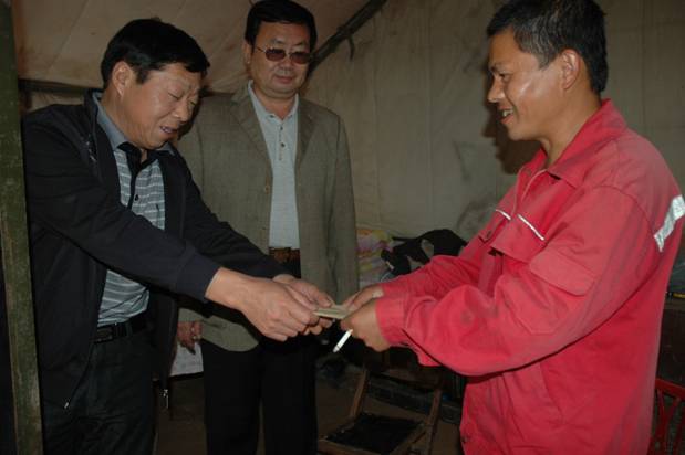 9月25日,省地礦總公司黨委副書記、工會主席吳學(xué)海、工會常務(wù)副主席、黨群工作部主任王建洲一行深入我分公司(隊)地質(zhì)勘察工程處韓城項目檢查指導(dǎo)工作,并送上“雙節(jié)”慰問金。