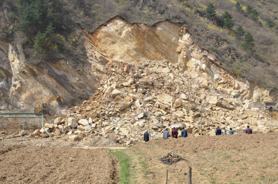 2017年3月27日下午16時(shí),山陽(yáng)縣中村鎮(zhèn)洛峪街社區(qū)河南組十人盤(pán)地帶山郭公路(308縣道)邊坡突發(fā)崩塌,堵塞道路,造成交通中斷,當(dāng)?shù)厝罕姵鲂袊?yán)重受阻。我隊(duì)在接到山陽(yáng)縣國(guó)土資源局請(qǐng)求支援電話后,立即啟動(dòng)應(yīng)急預(yù)案,組成以副隊(duì)長(zhǎng)李彥斌同志為組長(zhǎng),史偉宏、王建彬、胡建剛、高紅躍等同志為組員的應(yīng)急調(diào)查小組,第一時(shí)間趕赴山陽(yáng)縣,展開(kāi)應(yīng)急調(diào)查工作。