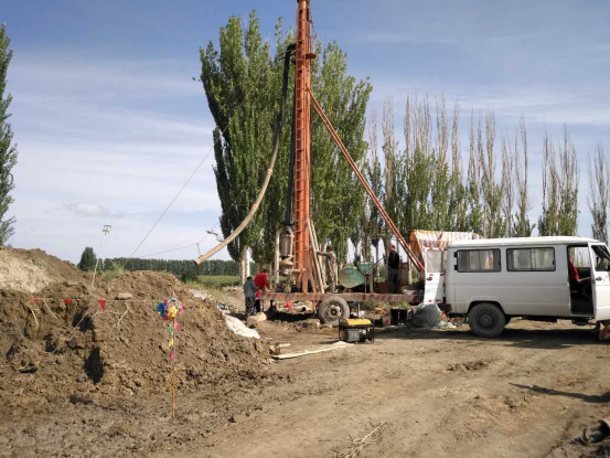 此次項(xiàng)目野外工作取得了良好的效果,共完成水文地質(zhì)、工程地質(zhì)、環(huán)境地質(zhì)調(diào)查400km2,水文地質(zhì)鉆探600m(3孔),工程地質(zhì)鉆探600m(18孔),土壤鹽漬化調(diào)查探井121m(76孔),采取水樣90件,采取土力學(xué)樣300件,土壤易溶鹽土樣325件,水文地質(zhì)孔進(jìn)行抽水試驗(yàn)5個(gè)試段,工程地質(zhì)鉆孔標(biāo)準(zhǔn)貫入試驗(yàn)200次、波速測(cè)試18孔。(楊可樂(lè))