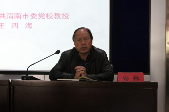 11月20日,我隊(duì)在地質(zhì)科研中心二樓會議室舉辦黨的十九大報(bào)告精神講座。特別邀請渭南市委黨校副校長、教授王四海講課。黨委書記、隊(duì)長安林主持講座,并對全隊(duì)學(xué)習(xí)貫徹十九大精神提出了要求。
