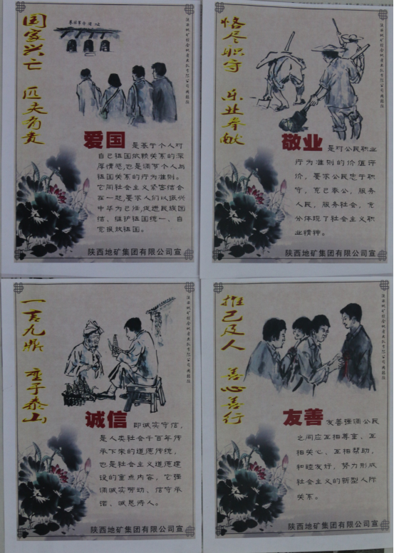 近日,在集團(tuán)公司系統(tǒng)開展的社會主義核心價(jià)值觀宣傳海報(bào)創(chuàng)作及展評活動中,我公司退休職工周振德同志創(chuàng)作的作品,為公司贏得“陜西地礦集團(tuán)有限公司系統(tǒng)社會主義核心價(jià)值觀宣傳海報(bào)創(chuàng)作三等獎”。