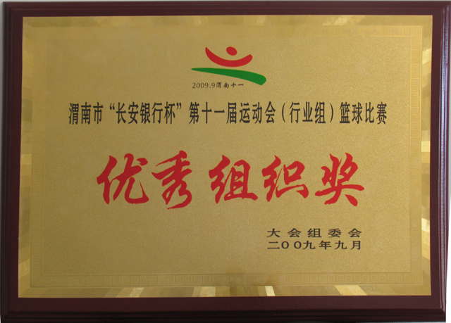 渭南市長(zhǎng)安銀行杯十一屆運(yùn)動(dòng)會(huì)籃球比賽優(yōu)秀組織獎(jiǎng)