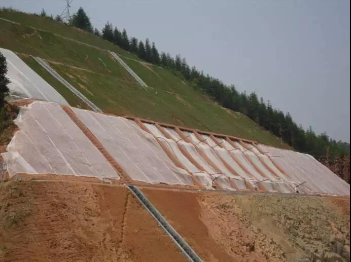 以往的邊坡防護(hù)綠化方法是:在挖好的邊坡上先掛網(wǎng),再通過壓力噴射將草種和泥漿組成的混合液噴到邊坡上,將邊坡覆蓋,等草長出后達(dá)到植物防護(hù)的目的。但是這種方法有很大的局限性,它只能用于坡度小于45°的邊坡防護(hù)。雖然這種防護(hù)方式采取掛網(wǎng)錨固等措施,試圖使土壤能很好地附著于坡面,但是因?yàn)檫吰赂叨负屯寥赖淖灾,使噴植層無法抵抗暴雨沖刷和烈日暴曬,最終引起溝蝕、片蝕,甚至坡面整體垮塌,不能解決固土這一根本問題。