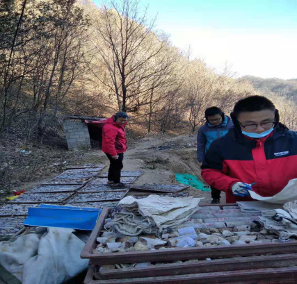 受到洪災影響,導致項目原計劃9月底需結(jié)束的探礦工程(鉆探、硐探)至現(xiàn)今(12月初)仍未完成,對項目組在野外的實施也造成了極大的困難?辈閰^(qū)地處秦嶺山脈小秦嶺西段、分水嶺南側(cè),地形屬中低起伏的山區(qū)及河谷地貌類型,大部分區(qū)域海拔超過1500米,11月以后該區(qū)域?qū)儆谒、冰凍期,最低溫度達-10℃以下。為了保質(zhì)保量地按時完成項目野外勘查工作,擴大找礦成果,項目組人員不畏嚴寒,克服重重困難,大家在寒風呼嘯、極寒天氣的環(huán)境下堅守在野外一線,對鉆探、硐探工程的施工及時進行指導,按時完成工程編錄、采集樣品等地質(zhì)工作。