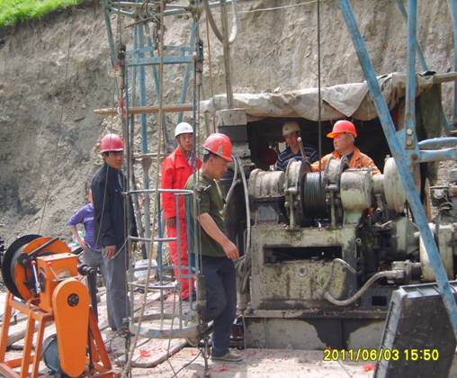 本網(wǎng)訊 新疆項(xiàng)目部208機(jī)臺翹首期盼的繩鉆終于在公司的支持和項(xiàng)目部的努力下順利投入使用,于6月4日鑫泉煤礦ZK303開鉆。開鉆當(dāng)天,舉行了隆重的開鉆儀式。項(xiàng)目部經(jīng)理關(guān)心田、副經(jīng)理李紅、修理工及203機(jī)臺機(jī)長冀安民、206機(jī)臺機(jī)長何家利全部到場指導(dǎo)。