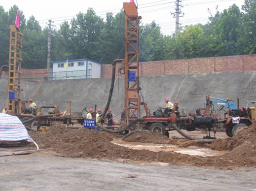 朝陽天下·商住樓,建筑面積45739.31平方米,設(shè)計地面以上25層,地下1層,基礎(chǔ)采用鉆孔灌注樁設(shè)計樁徑600mm,樁長29.5m,樁數(shù)447根,砼方量3727立方,鋼筋244噸,砼強(qiáng)度C35。項目施工由我隊基礎(chǔ)工程處承擔(dān),預(yù)計工期100天。目前已完成三組試樁施工,經(jīng)檢測達(dá)到了設(shè)計要求。