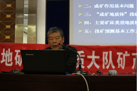 為了提高礦產(chǎn)地質(zhì)勘查技術(shù)水平,對全隊專業(yè)技術(shù)人員進行專業(yè)課繼續(xù)教育,我隊特邀多年從事、研究礦產(chǎn)資源勘查工作的專家葉天竺和張德會教授給技術(shù)人員授課。葉天竺主要講授了找礦概述、成礦作用基本問題、成礦地質(zhì)體找礦預測地質(zhì)模型概述、主要礦床類型找礦預測地質(zhì)模型和找礦預測的基本工作方法;張德會從熱液成礦地球化學與成礦預測、成礦地球化學與隱伏礦預測、關于勘查地球化學的幾個問題、角礫巖成礦作用和成礦預測等四個方面進行闡述。