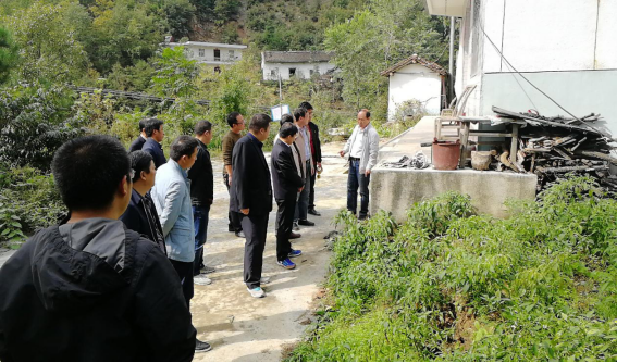 黨委書(shū)記、隊(duì)長(zhǎng)安林向山陽(yáng)各級(jí)干部介紹現(xiàn)場(chǎng)地質(zhì)情況