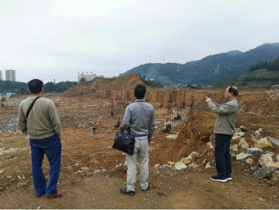 10月13日至10月14日,我隊(duì)黨委書記、隊(duì)長(zhǎng)安林一行赴貴州分院畢節(jié)市七星關(guān)區(qū)清灣安置房項(xiàng)目施工現(xiàn)場(chǎng)檢查指導(dǎo)勘察和邊坡治理工作。(趙永江)