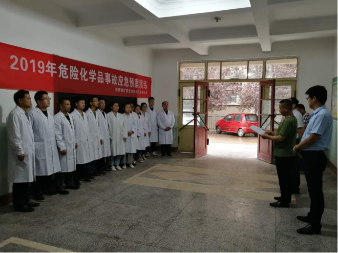 一身穿防腐蝕工作服的實驗室化學組員工在倉庫取鹽酸過程中,不慎將濃鹽酸瓶掉落地上,濃鹽酸在水泥地面上四溢流淌,事故發(fā)生后,接到報告的實驗室主任李丁旺、副主任劉佐明立即趕到現(xiàn)場,啟動應急預案并通知公司安全環(huán)保部,一面組織灑落區(qū)域人員撤離至安全距離,一面指揮已到達的應急小組成員控制灑落源,設置路障和警示隔離帶,保證灑落區(qū)域通風,降低空氣中化學品濃度,用細砂圍堵流淌的鹽酸防止擴散,區(qū)域被控制后,身穿防腐服,腳蹬防酸堿鞋,手戴防腐手套的救援人員有條不紊的用熟石灰對酸液中和、PH試紙檢測、塑料工具清理廢棄物、大水清理現(xiàn)場.....這不是真正的事故現(xiàn)場,而是我公司實驗室6月21日下午組織的一場加強化學品灑落處置能力,提高員工緊急情況下的應變能力及自我保護能力的應急演練,雖為模擬,但每個參練人員都能嚴格按照真正的事故處置程序做的一絲不茍,各負其責,配合默契,及時、有效地完成了演練任務。